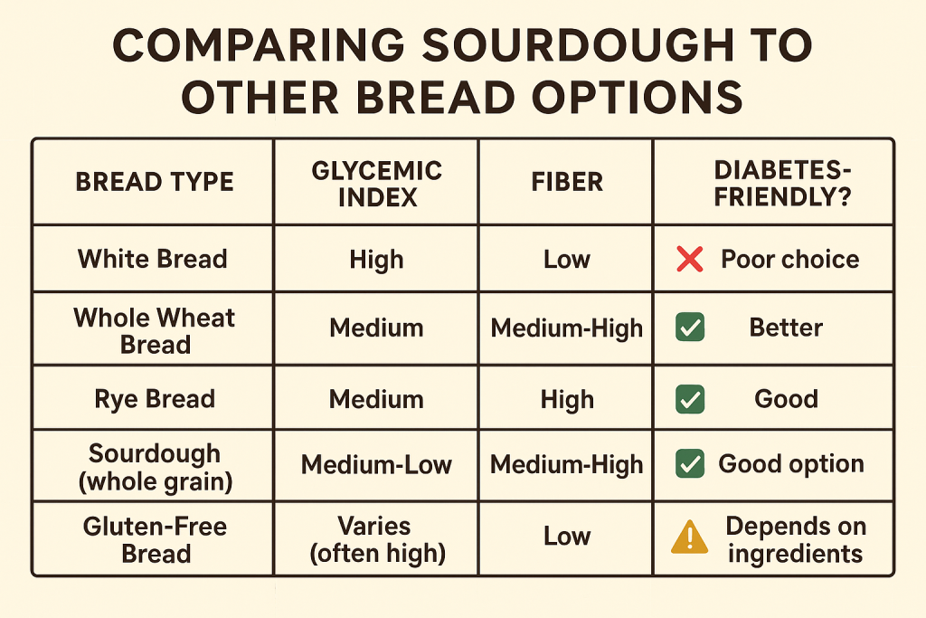 - The American Diabetes Association notes that whole grains and low-GI foods are better for managing blood sugar, categories where sourdough often fits.